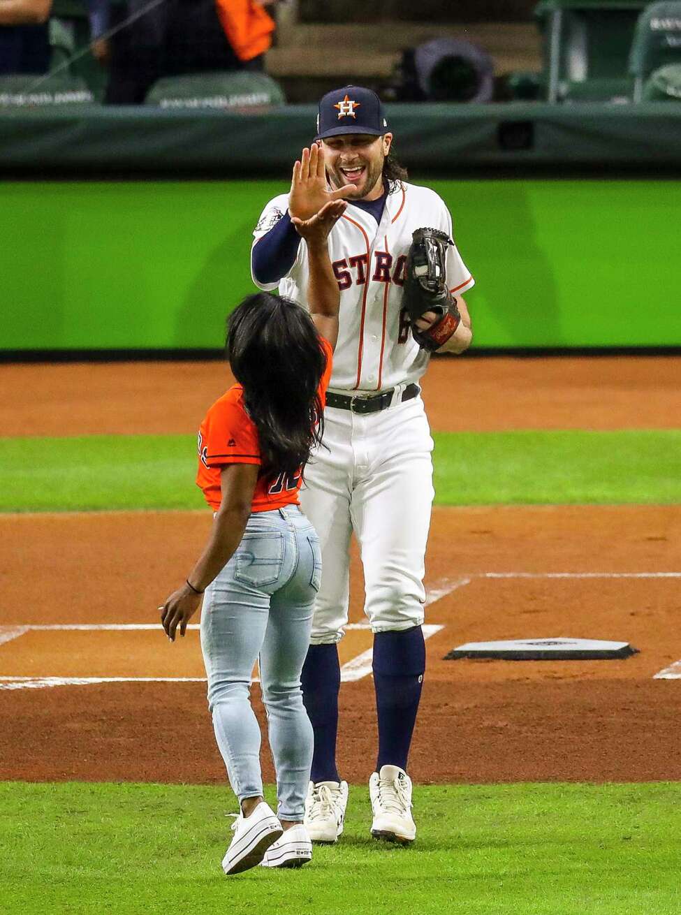 Let the record reflect that simone biles performed a standing full back flip with a twist in front of the pitcher's mound wednesday night at minute maid park.